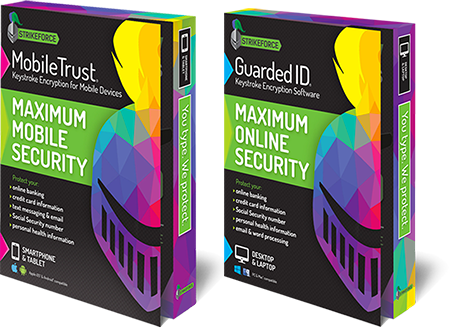GuardedID® and MobileTrust® proactively protect your information against keyloggers, even zero-day attacks. StrikeForce combines military-grade keystroke encryption with other must-have security features to give you complete peace of mind when using your online devices.